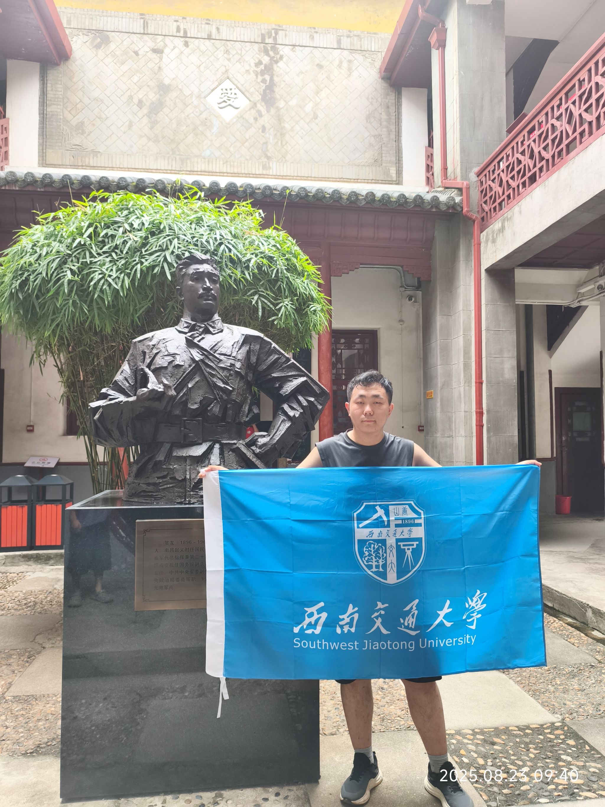 最后一站,我来到了贺龙故居。踏入故居,仿佛踏入了一段波澜壮阔的历史。简陋的房屋、陈旧的家具,无不诉说着当年革命先辈们艰苦卓绝的斗争生活。我再次展开校旗,将其郑重地放置在故居的显眼位置。在这里,我仿佛看到了贺龙元帅当年在这里运筹帷幄、指挥作战的英姿,感受到了他为了国家和人民的利益,不惜抛头颅、洒热血的伟大情怀。