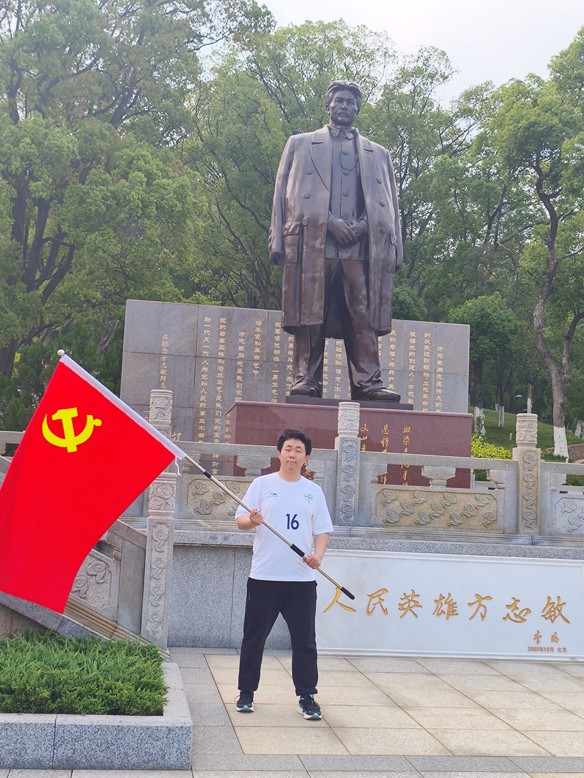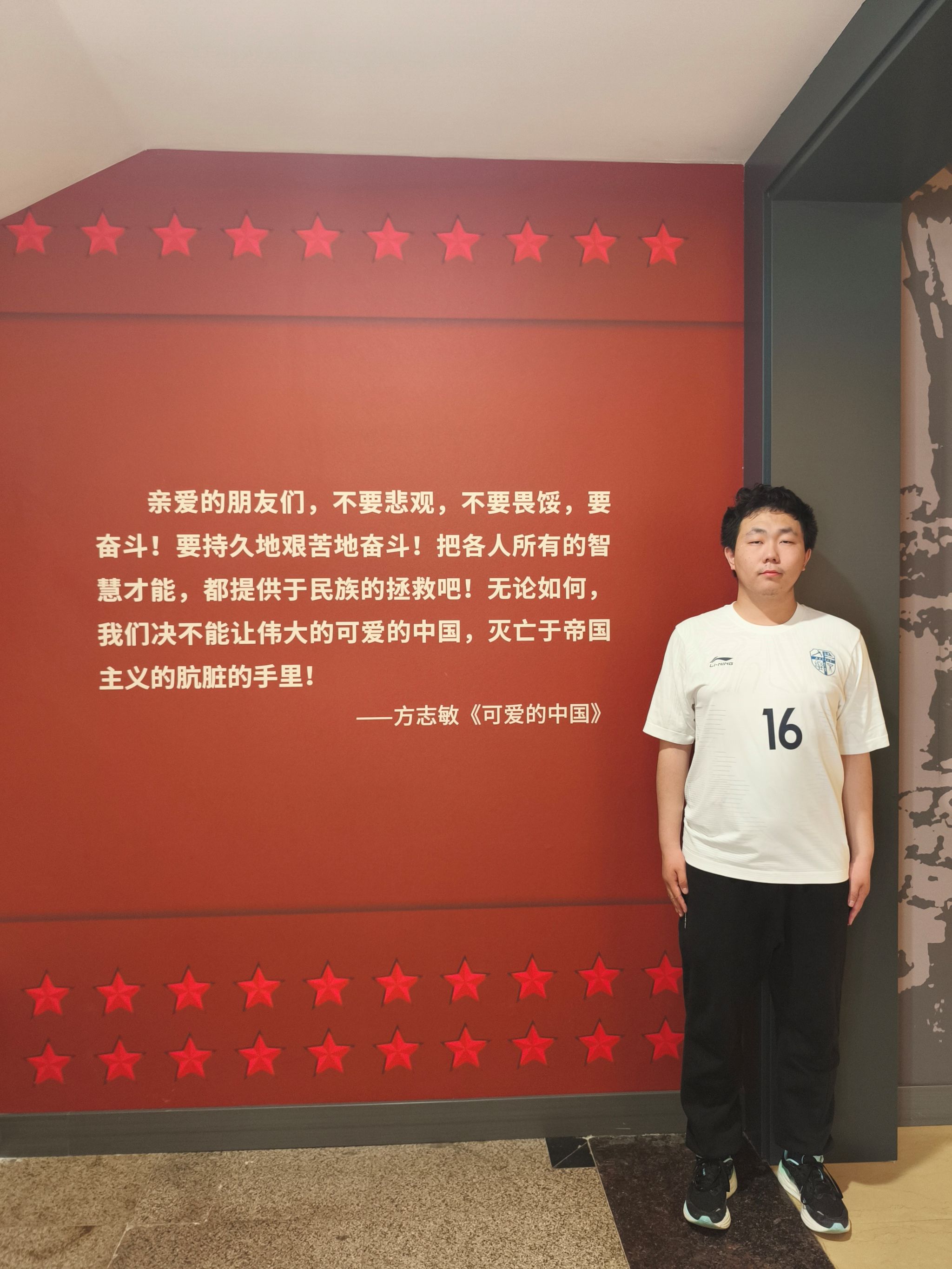 接着,我怀着无比崇敬的心情来到了方志敏烈士陵园。踏入陵园,庄严肃穆的气息扑面而来。松柏苍翠,仿佛在默默守护着烈士的英灵。我缓缓展开校旗,与方志敏烈士合影。方志敏烈士为了民族的独立和人民的解放,不惜抛头颅、洒热血,他那“清贫,洁白朴素的生活,正是我们革命者能够战胜许多困难的地方”的崇高精神,如同一座不朽的丰碑,屹立在历史的长河中。校旗在微风中猎猎作响,仿佛在向烈士诉说着后人对他们的缅怀与敬仰,也激励着我们要以烈士为榜样,坚守初心,砥砺前行。