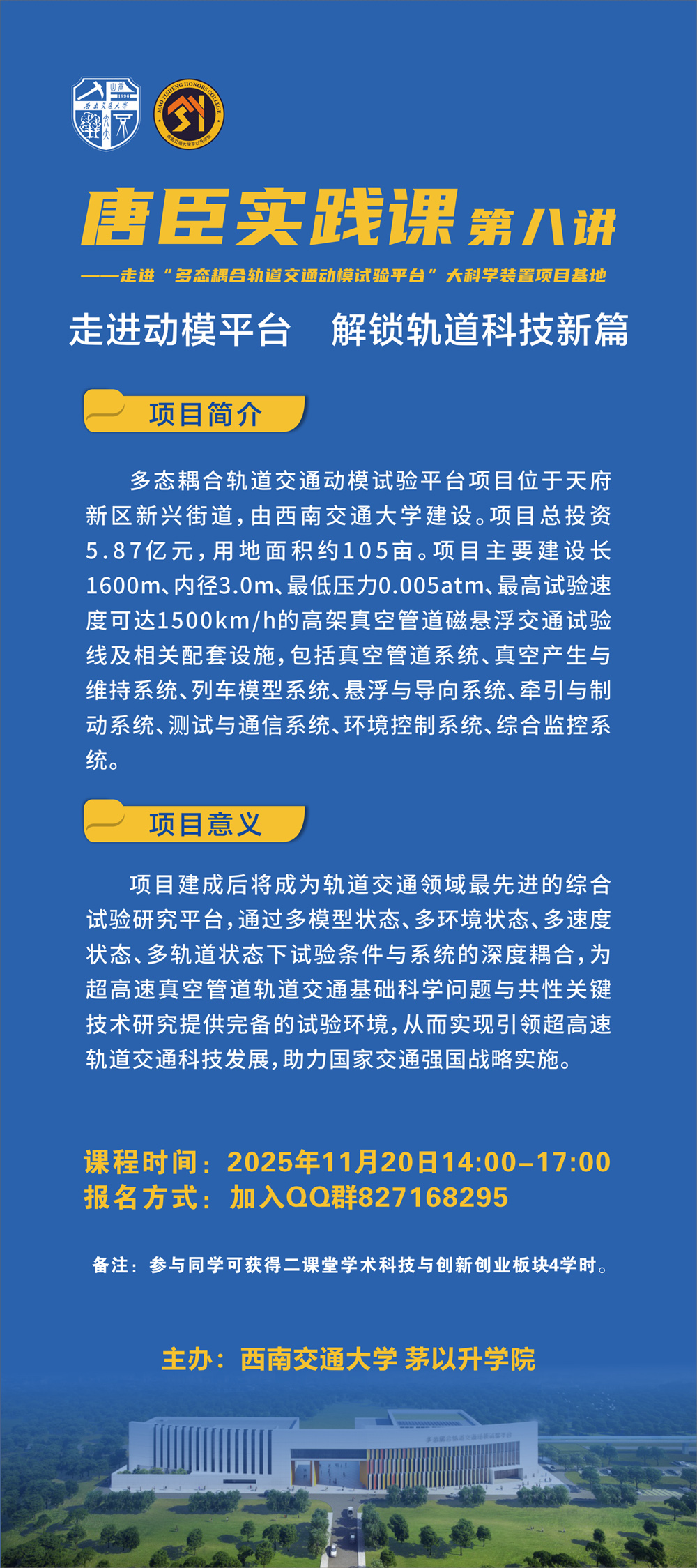 唐臣实践课第八讲——走进“多态耦合轨道交通动模试验平台”大科学装置项目基地即将开课