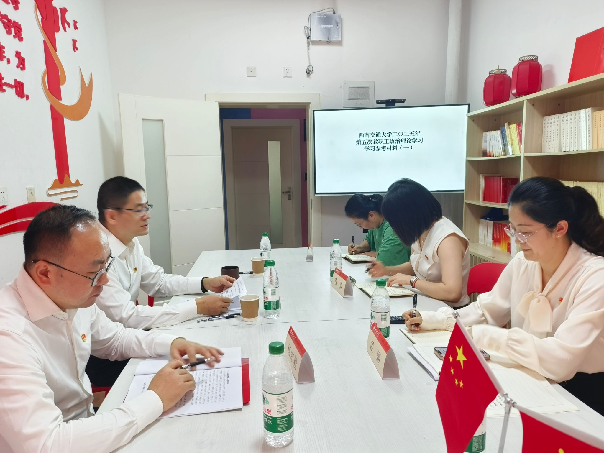 2025925日下午,av影片直播 党支部开展教职工政治理论学习。重点围绕西南交通大学2025年第五次教职工政治理论学习参考材料展开学习。深入学习习近平总书记关于“弘扬伟大抗战精神,向着中华民族伟大复兴的光辉彼岸奋勇前进”系列重要论述,并集中学习了《中华人民共和国网络安全法》。